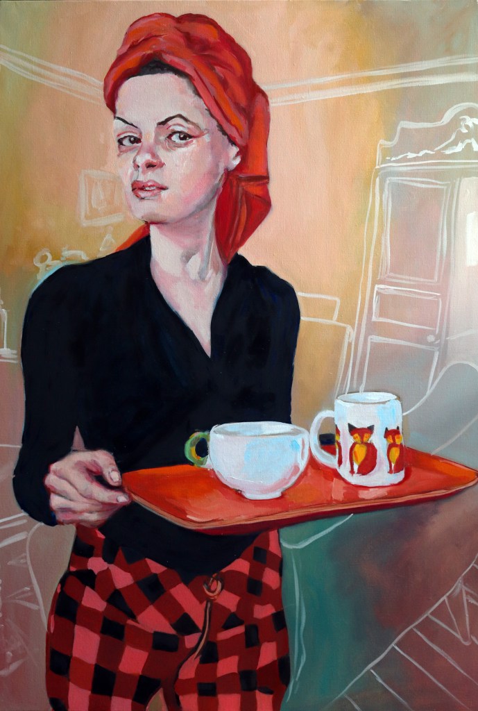 Jeune femme au plateau, huile sur toile (130x89cm)